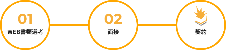 • エントリーフォームに入力いただいた内容をもとに選考をいたします。 通過された方に、面接についてご案内いたします。WEB審査に通過した方に面接日のご連絡いたします。